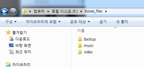 저는 음악은 music , 동영상은 video 로 폴더를 만들었습니다.