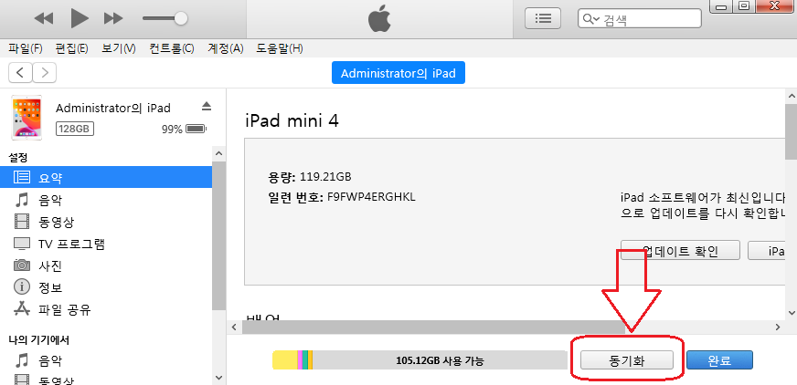 7) 하단 동기화 버튼을 누르시면