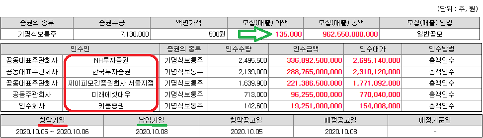 공모주 주관사라고 합니다. (위 사진에 인수인입니다.)