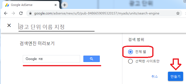 광고 단위 이름 지정은 광고들이 많을경우 구분하기 쉽게 이름을 지어주세요.