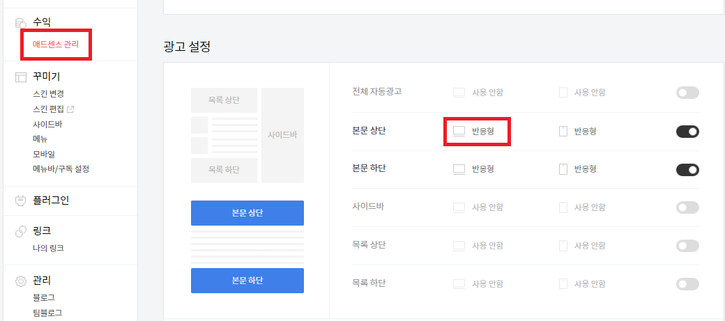 관리자 메뉴 - 수익 - 애드센스 관리 클릭해주세요.