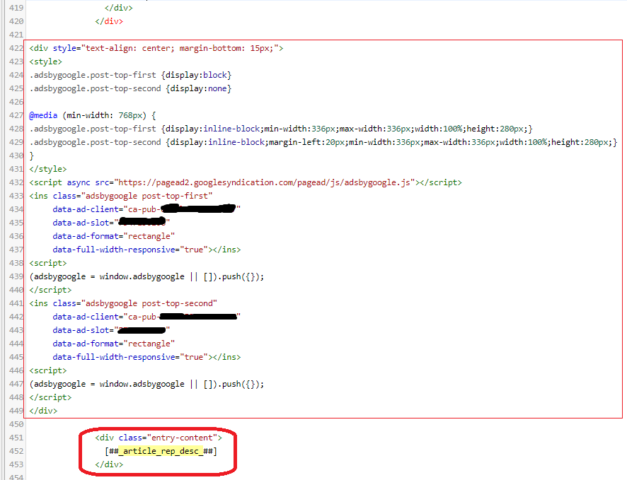 지금까지 계속 상단 1개 , 하단 1개로 애드센스 광고를 넣었는데요. 구글링 하다 보니 다들 상단에 사각형으로 2개씩 넣으면 좋다고 하더라고요. ^^;; 생각해 보면 작지만 2개를 다른 광고로 나오게 한다면 클릭률이 좋아질 거 같기도 해서 한번 해봅니다. ^^;; 1) 왼쪽과 오른쪽에 다른 광고를 위해 애드센스 디스플레이를 2개 발급합니다. 2) 광고 이름을 나중에 확인하기 편하게 지어주세요. 티스토리_상단_오른쪽 티스토리_상단_왼쪽 이런 식으로 요. ㅋ 3) 생성된 광고 번호를 기록해 두세요. * 티스토리 상단 오른쪽 data-ad-client="ca-pub-오른쪽????" * 티스토리 상단 왼쪽 data-ad-client="ca-pub-왼쪽????" 4) 상단 광고 2개 HTML 코드 작성 아래 코드에서 검은색 부분만 수정해 주시면 됩니다. 오른쪽과 왼쪽 바꾸셔도 상관없지만 나중에 헷갈릴 수 있으니 조심하세요. <!-- 애드센스 상단 광고 넣기 --> <div style="text-align: center; margin-bottom: 15px;"> <style> .adsbygoogle.post-top-first {display:block} .adsbygoogle.post-top-second {display:none} @media (min-width: 768px) { .adsbygoogle.post-top-first {display:block}{display:inline-block;min-width:336px;max-width:336px;width:100%;height:280px;} .adsbygoogle.post-top-second {display:none}{display:inline-block;margin-left:20px;min-width:336px;max-width:336px;width:100%;height:280px;} </style> <script async src="pagead2.googlesyndication.com/pagead/js/adsbygoogle.js"></script> <!-- 티소트리_상단_오른쪽 --> <!-- 티스토리_상단_완쪽 --> </div> 5) 광도 코드 삽입하기 전에 기존 상단 광고를 없애야 되겠조.^^;; 관리자 메뉴 - 수익 - 애드센스 관리 클릭해주세요. 6) 마우스를 본문 상단쪽으로 가져가면 수정 버튼이 생깁니다. 클릭해주세요. 7) PC를 사용안함으로 선택해주세요. 확인 클릭해주세요. 8) 티스토리 - 관리자 메뉴 - 스킨 편집 들어가 주세요. 9) HTML 편집 클릭해주세요. 10) HTML 코드 삽입할 위치 찾기 찾을 위치 -> 코드 바로 위치 삽입해야 됩니다. HTML 편집기에서 ctrl + F 를 누르시면 검색할 수가 있습니다. 검색에서 article_rep_desc 이걸 넣고 Enter 키 누르시면 해당 위치로 바로 이동합니다. 11) 상단 2개 코드 넣기 오른쪽 상단에 적용 버튼 클릭해주세요. 12) 상단에 광고 2개 잘 뜨는지 볼게요. 감사합니다.