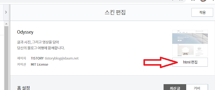 8) 티스토리 - 관리자 메뉴 - 스킨 편집 들어가 주세요.