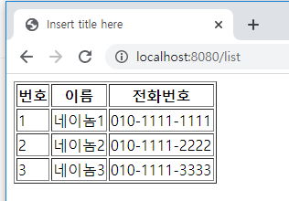 위 예제의 listMember.html을 변경해서 테스트했습니다.