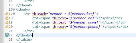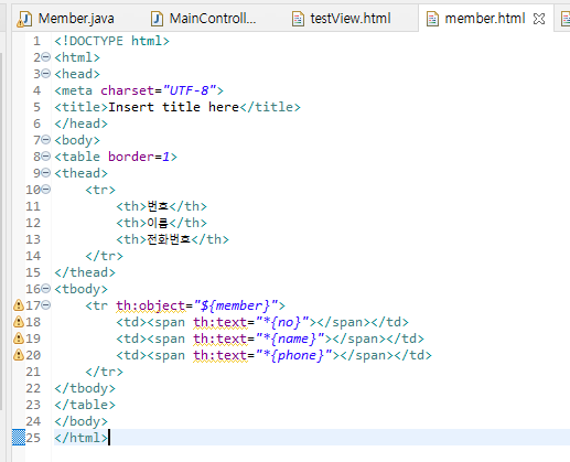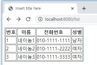 위 예제의 listMember.html을 변경해서 테스트했습니다.