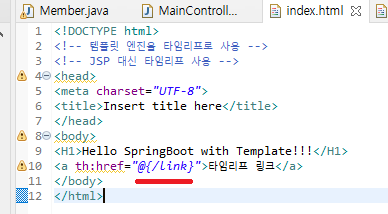@{/link}로 link.html 페이지로 이동하게 지정.