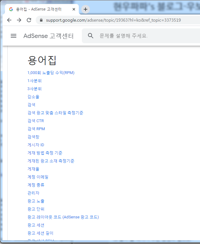 그제야 저도 애드센스 용어들을 살펴보고 알게 되었습니다.