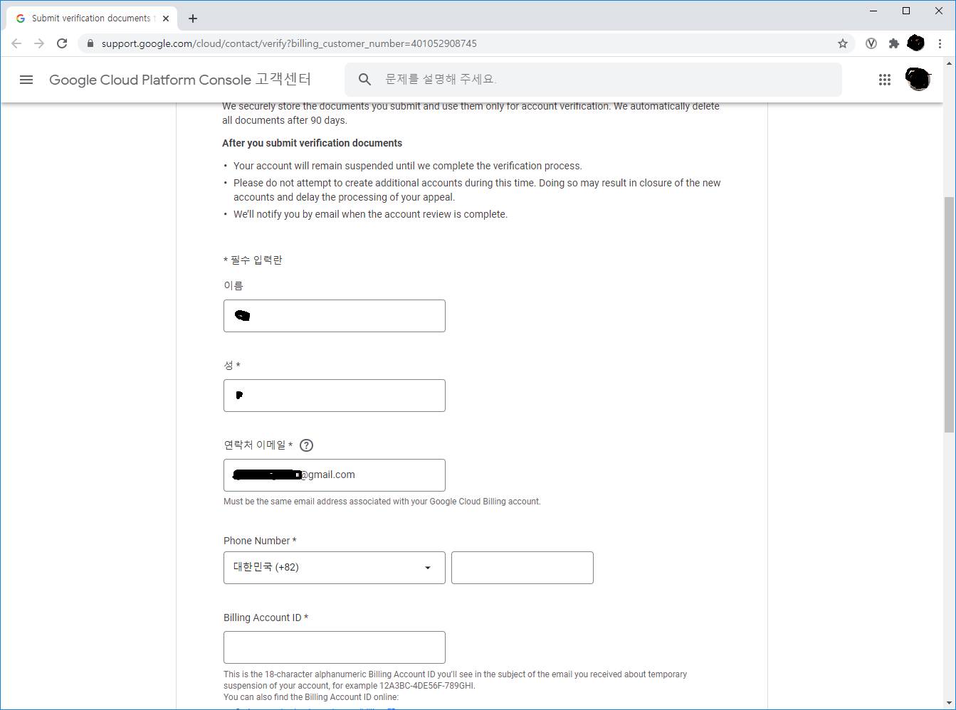 저는 GCP 홈페이지에서 바로 결제 상세 정보 입력했습니다.