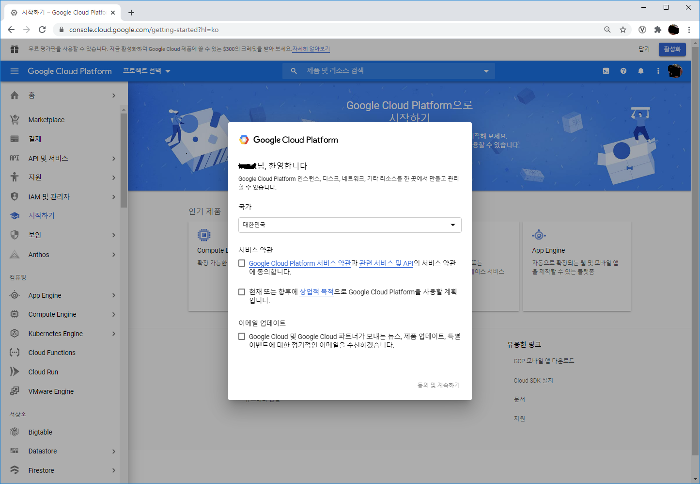여기까지 GCP 처음시작하기 가입하기 입니다.