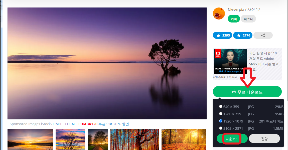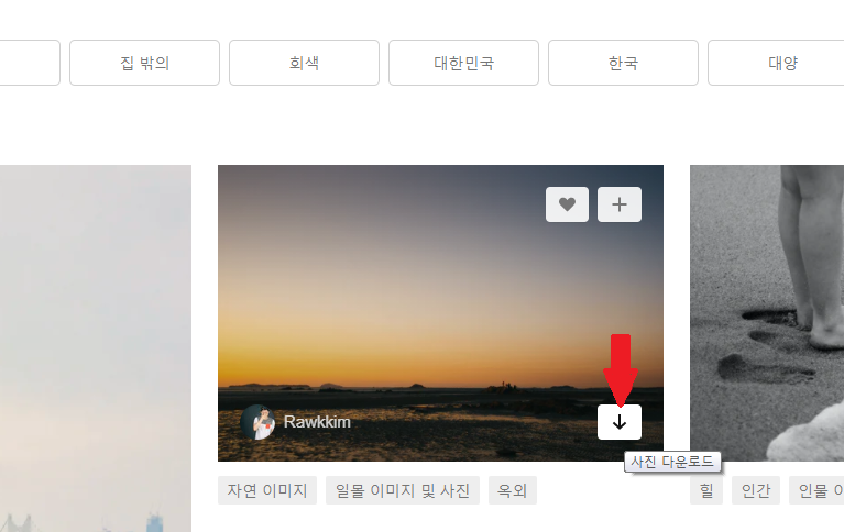사진 다운로드 클릭으로 바로 다운로드 할수 있고
