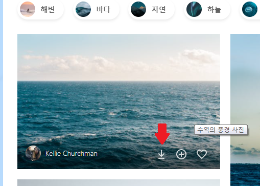이미지에 마우스를 올리면 아래처럼 다운로드 아이콘이 생깁니다.