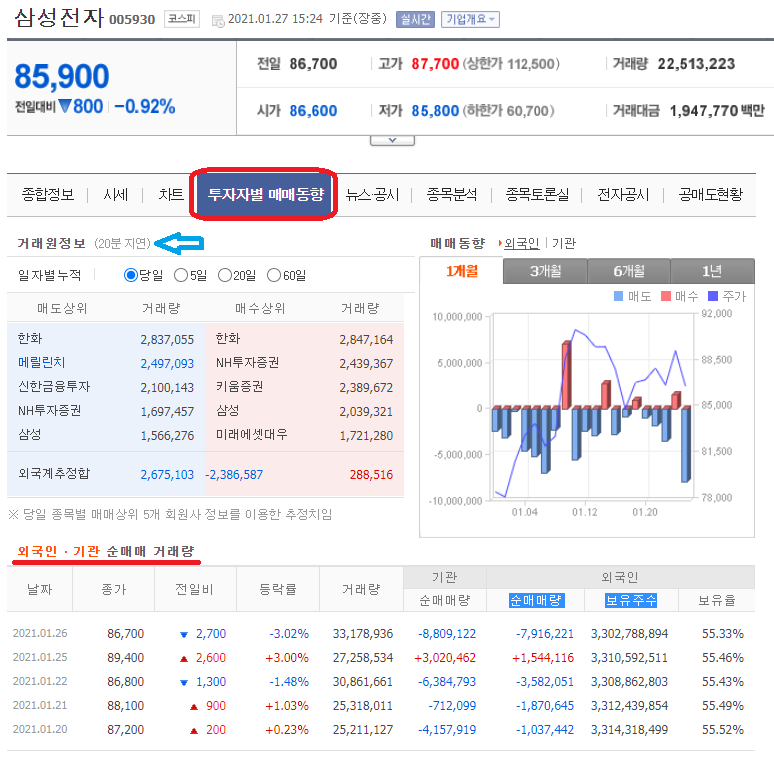 주가가 하락하고 있을 때 수급을 확인해 보고