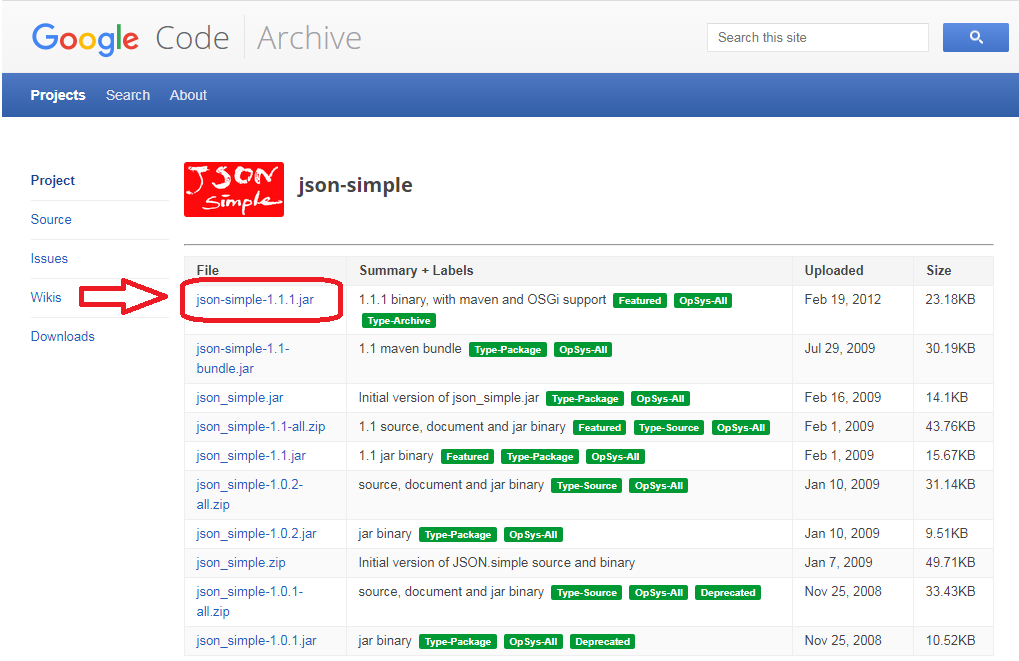 ② File에 json-simple-1.1.1.jar 파일명을 클릭해서 다운로드 받아주세요.