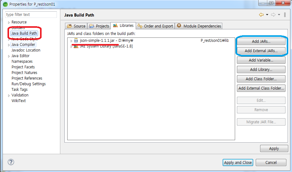 ④ json-simple-1.1.1.jar을 찾아 선택해주세요.