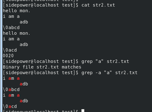 -a 옵션을 쓰지 않으면 해당 라인에 바이너리 데이타가 있으면