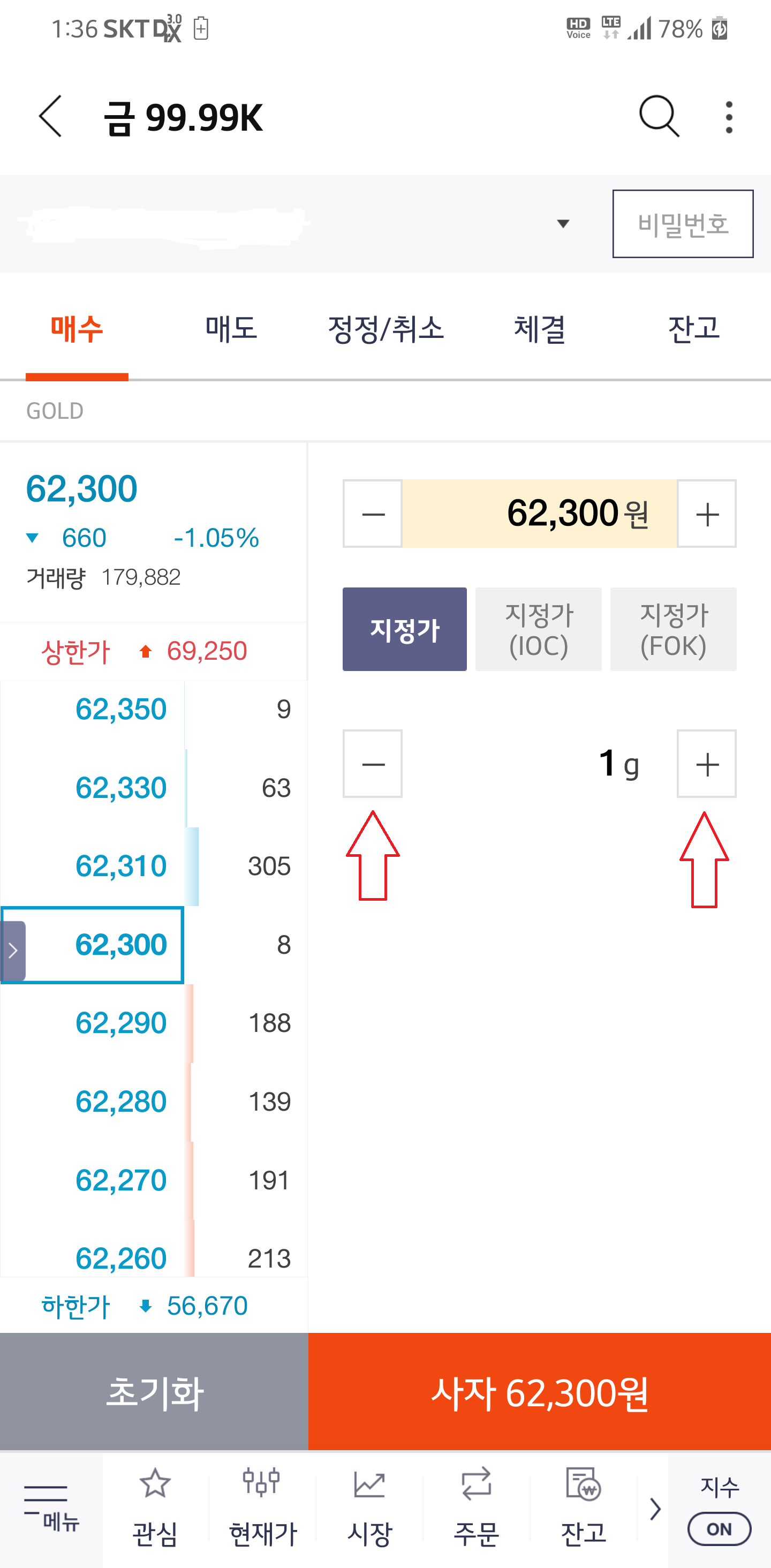 아래 주문 메뉴를 클릭하시면 사고팔 수 있습니다.