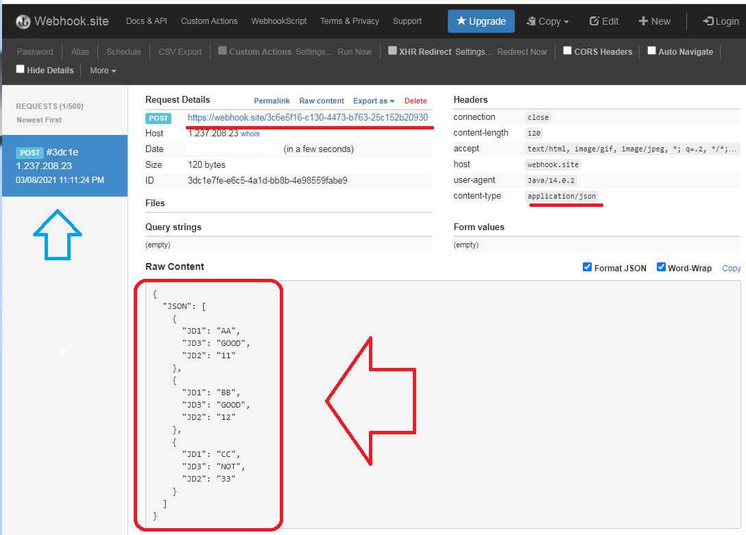 webhook.site 를 이용해서 바로 확인을 할 수가 있습니다.