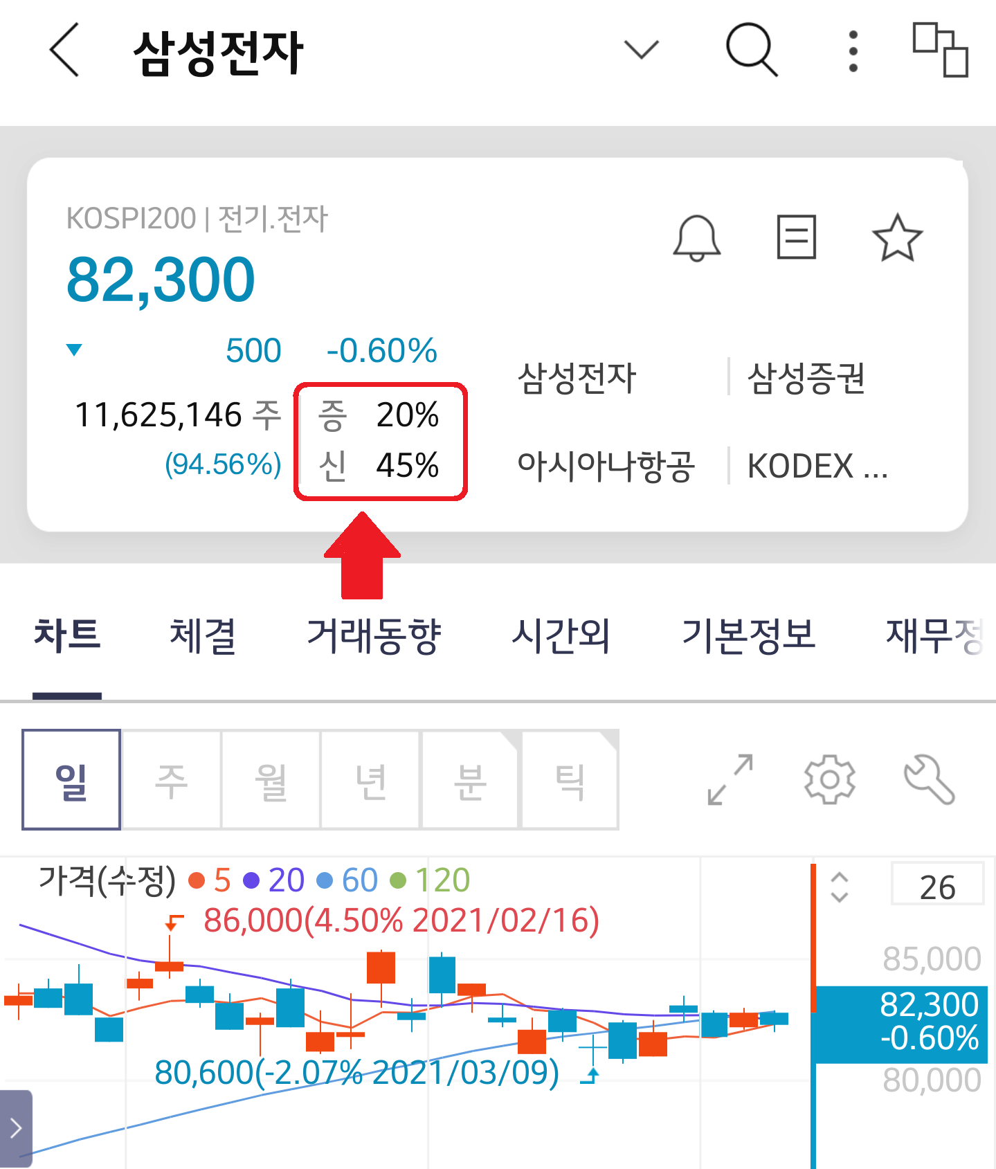 8만원의 45%인 3만6천원만 있으면 삼성전자 1주를 살 수 있습니다.