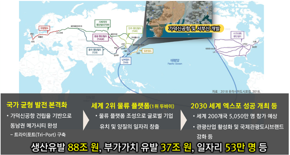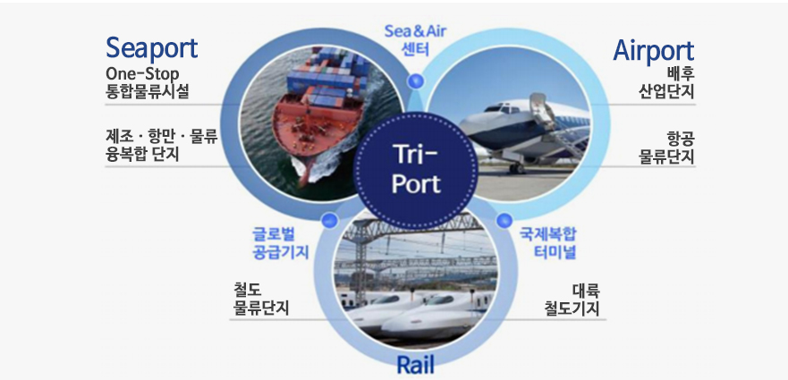 - 트라이포트 완성(공항, 철도, 항만 연계)으로 동북아 물류중심 부상