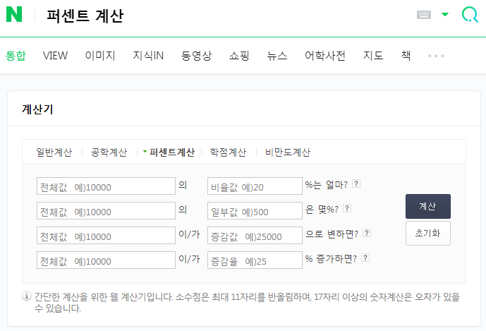 사실 네이버에 퍼센트 계산기가 있습니다. ^^;;