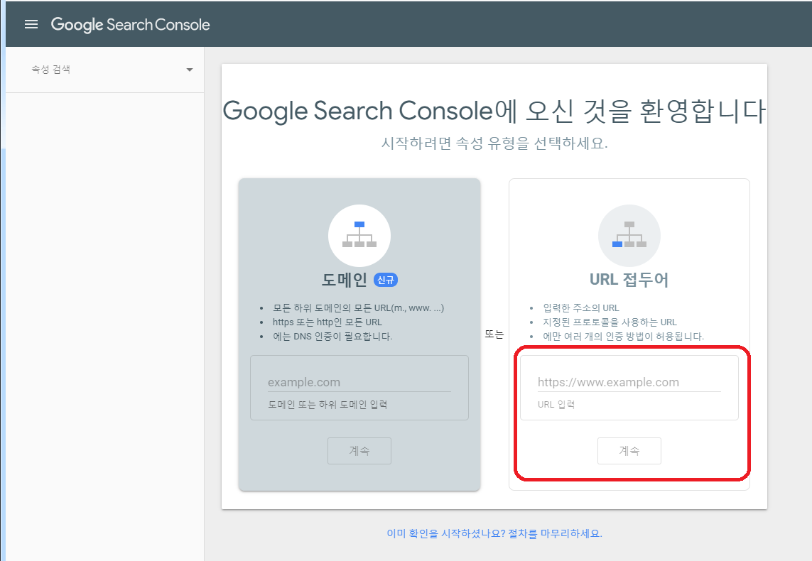 오른쪽 URL 접두어에 등록할 사이트를 적고 계속 클릭해주세요.