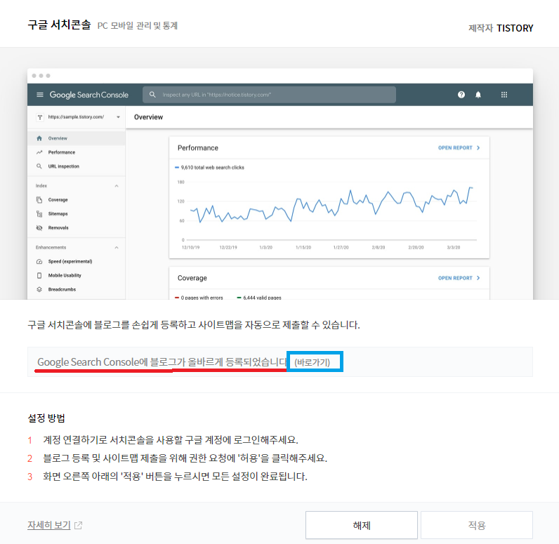 여기까지가 티스토리 플러그인을 통한 구글 서치 콘솔 등록이었습니다.