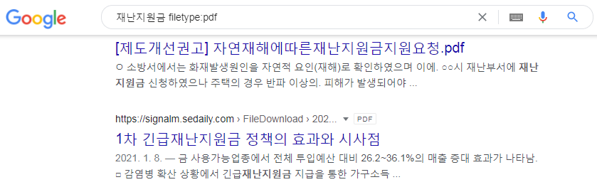 | filetype: | 결과를 특정 파일 형식의 결과로 제한합니다. |