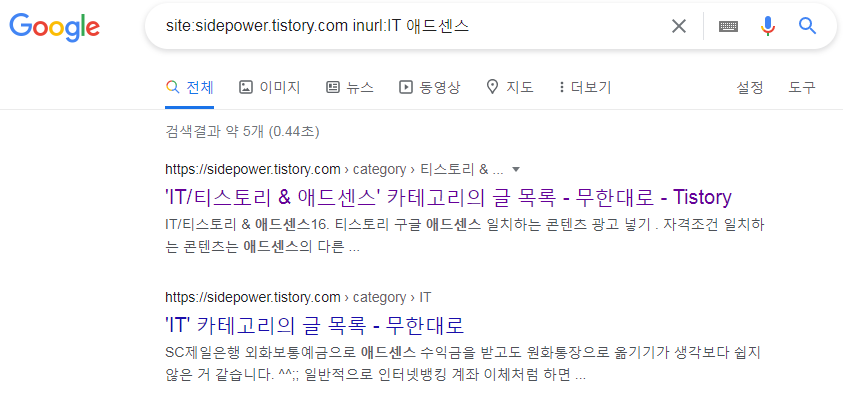 티스토리 사이트안에서 IT와 애드센스 단어 검색