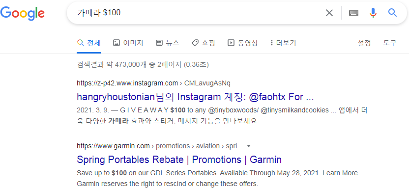 | OR | Google 검색은 기본적으로 검색어 사이의 논리적 AND로 설정됩니다. 대문자로 OR을 입력해야 되며 , 검색어 중에 하나라도 일치하면 결과로 표시합니다. |