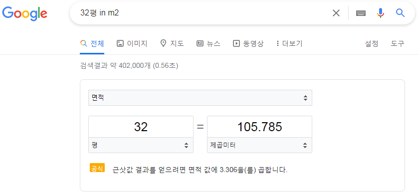 32평이 몇 제곱미터(㎡)인지 바로 검색할 수 있습니다.