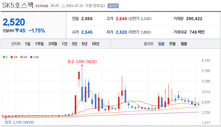 공모로 코스닥 주식시장에 상장한 페이퍼 컴퍼니(스팩)의 주식입니다.