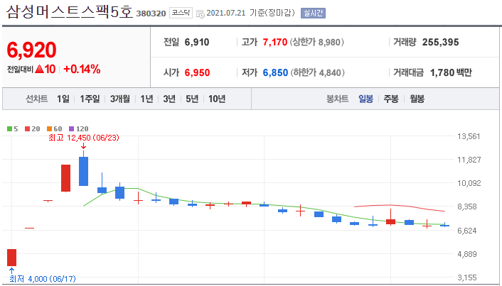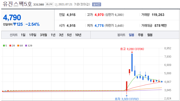 스팩주를 매수하실 때 합병 기업과 만기일을 꼭 확인하세요.