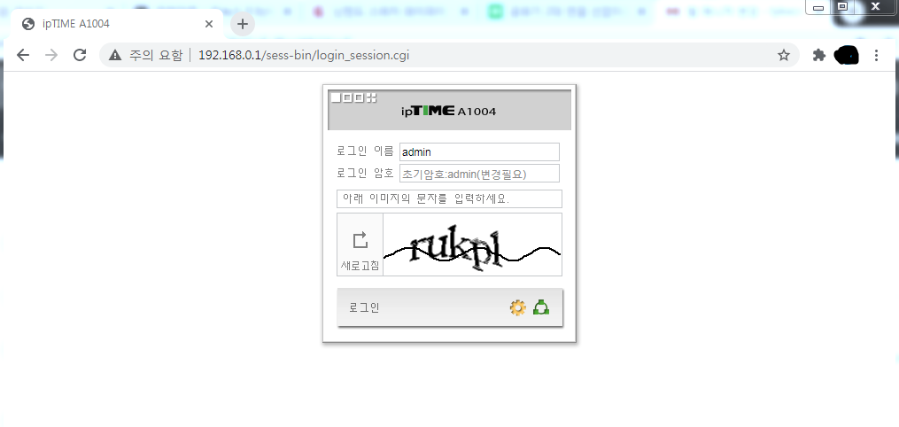 이때 주소창에 http://192.168.1.1 입력합니다.