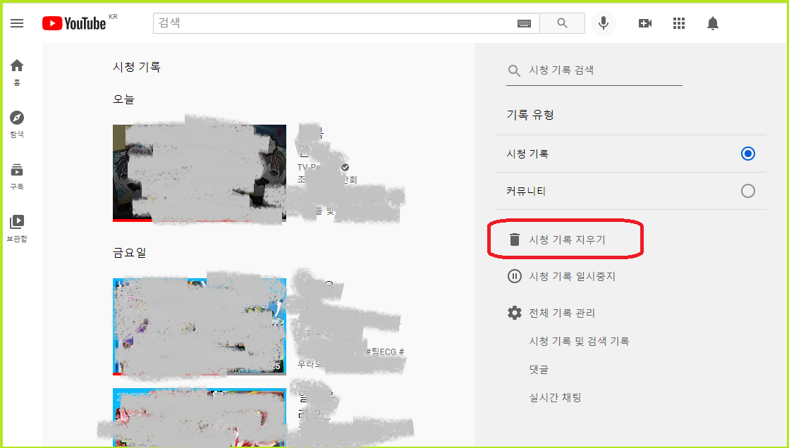 ■ PC 유튜브 알고리즘 초기화 하기