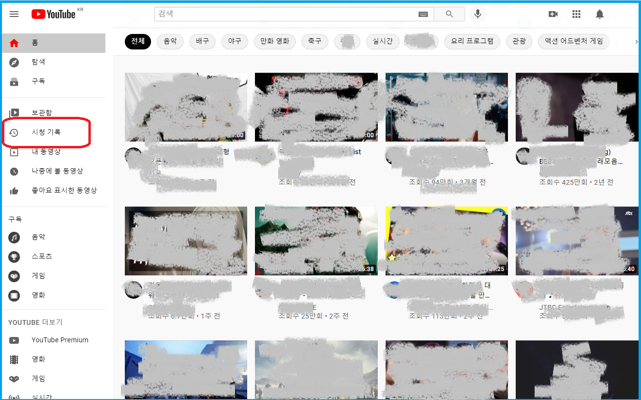 왼쪽 메뉴에서 시청 기록을 클릭하세요.