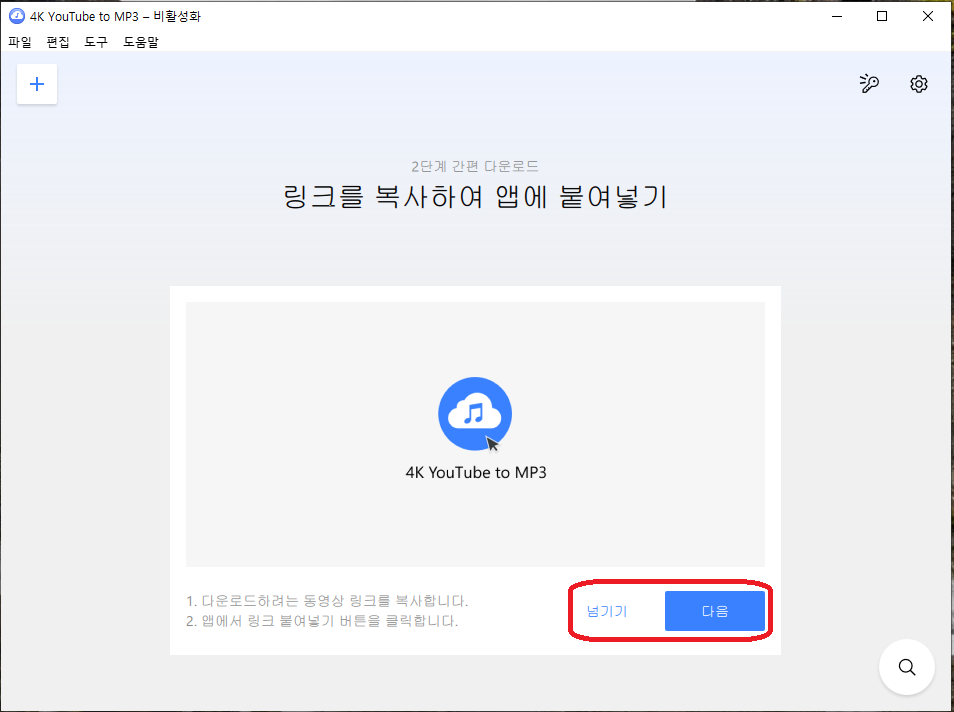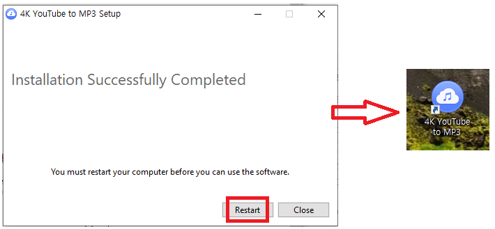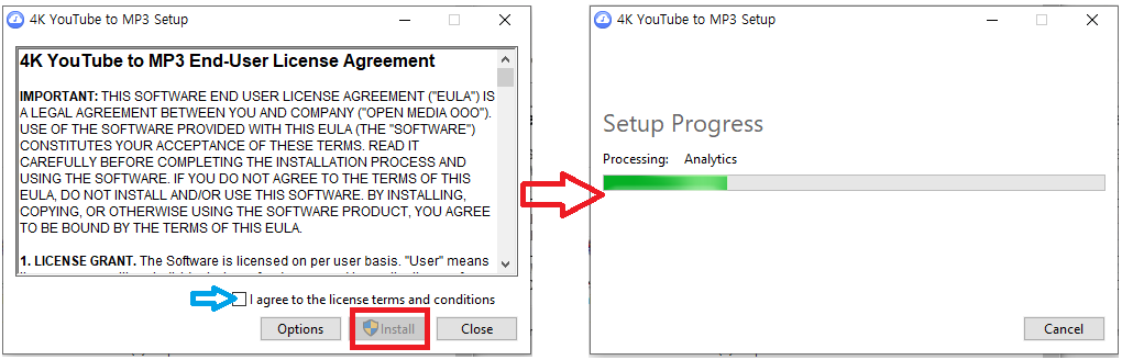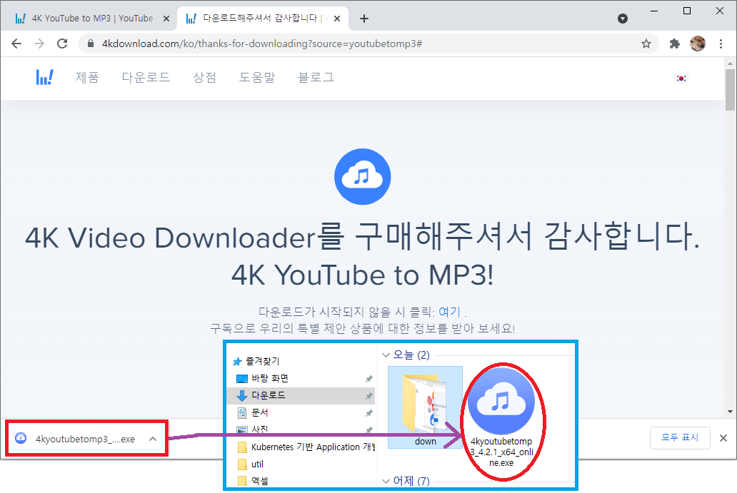 다운로드된 4kyoutubetomp3_4.2.1_x64_online.exe 설치파일을 실행해주세요.