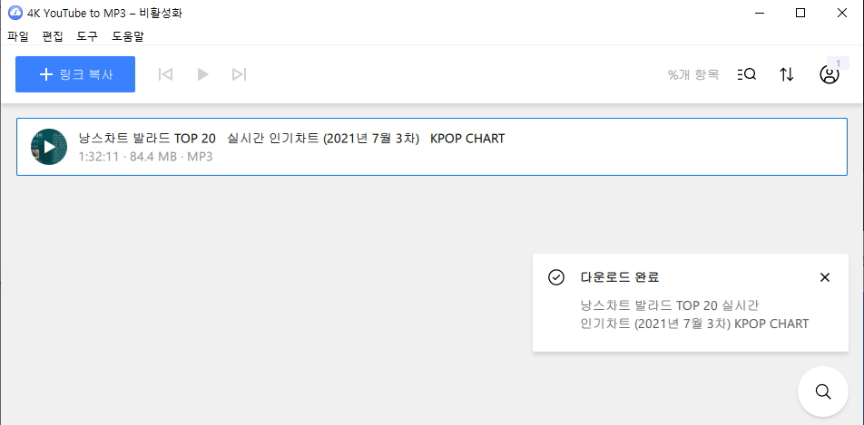 사용하기 편하게 4K YouTube to MP3 너무 잘 만든 거 같아요.