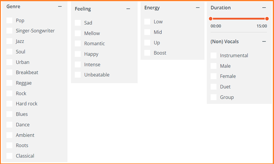 Genre (장르)와 Feeling(감정) , Energy , (Non) Vocals