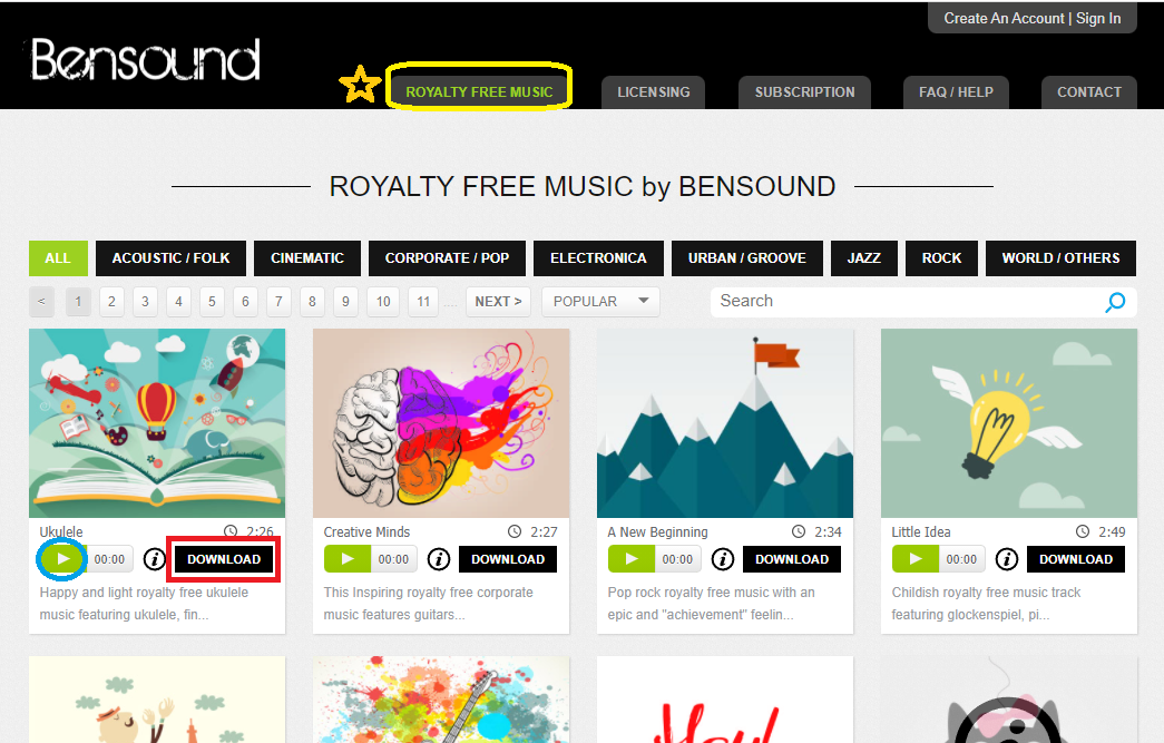 MUSIC FOR VIDEOS 선택해서 클릭하세요.