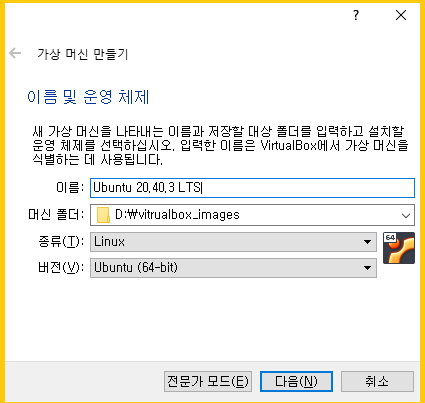 머신 폴더 : D:\vitrualbox_images
