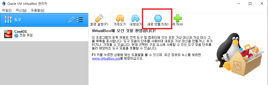 ● VirtualBox 새로 만들기 클릭하세요.