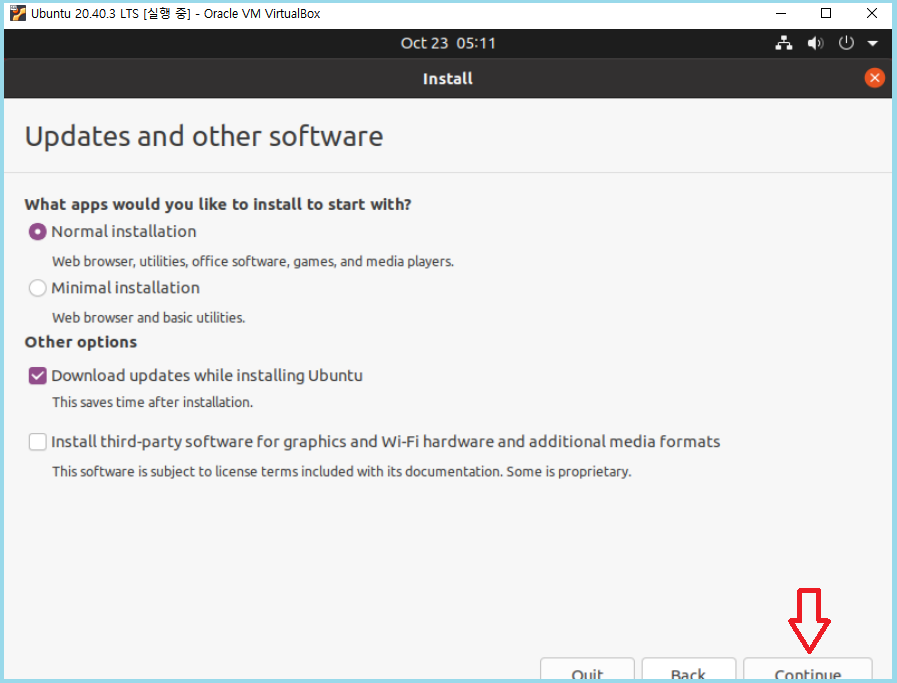 그리고 아래 보시면 Quit , Back , Continue 버튼이 반정도 보이시죠.