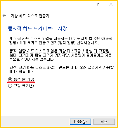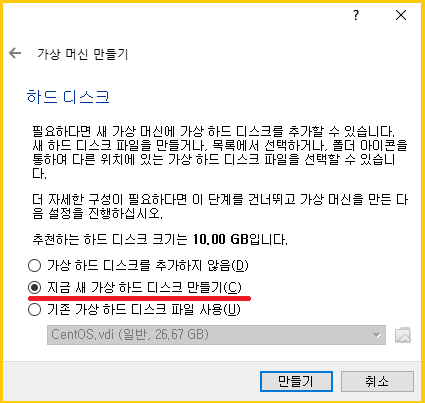 새 가상 하드 디스크 만들기 선택합니다.