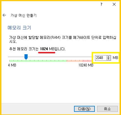 개발이나 테스트 정도는 2배 2048MB면 충분할 거예요.