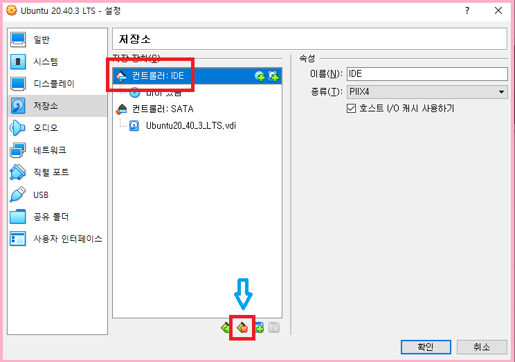 컨트롤러 : IDE 선택된 상태에 아래 삭제 클릭하세요.