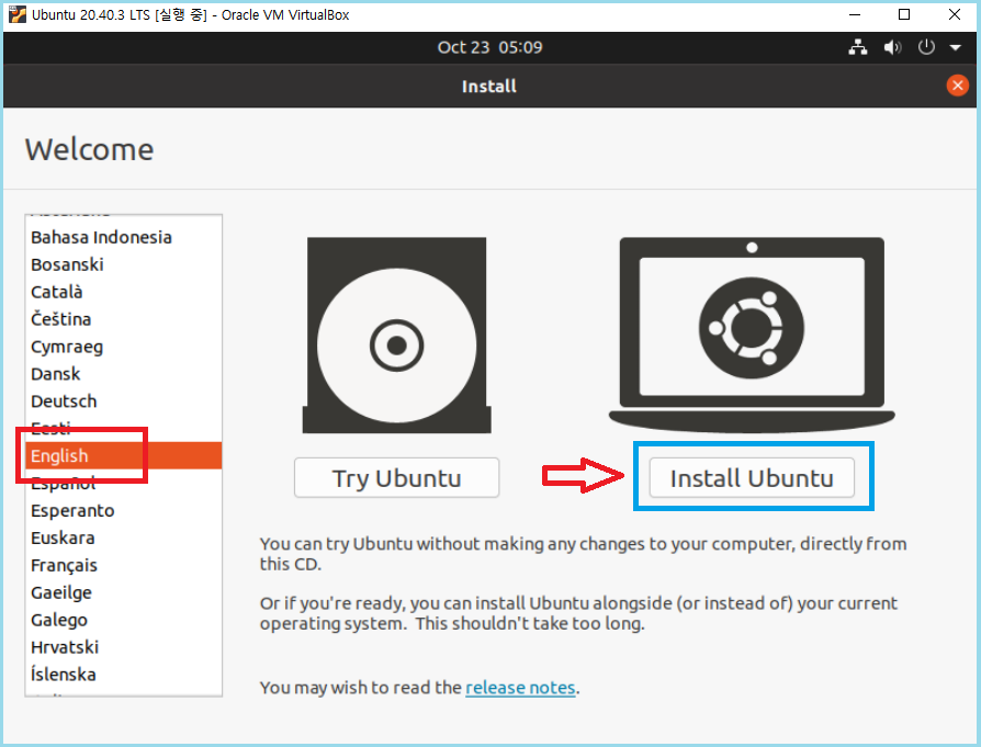 2021년 10월 23일 현재 우분투 가장 최신버전을 설치해 볼게요.
