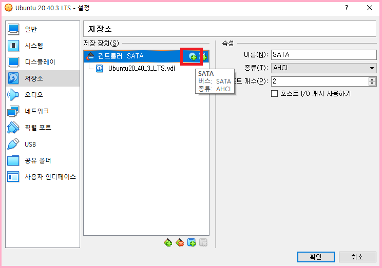 컨트롤러 : SATA에 「+」 추가 버튼을 클릭하세요.