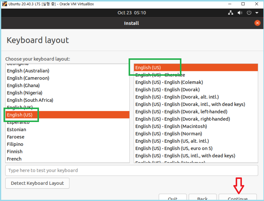 설치 진행 화면의 글을 Englist (영어)로 꼭 선택해주세요.