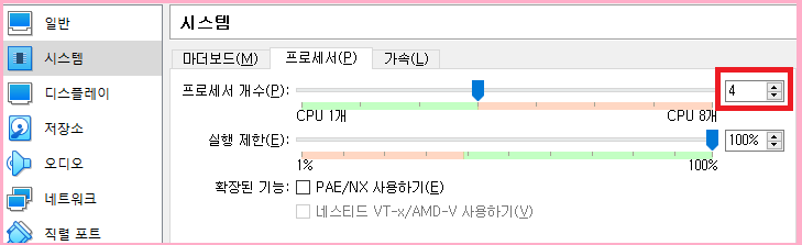 ● 프로세서 개수 지정