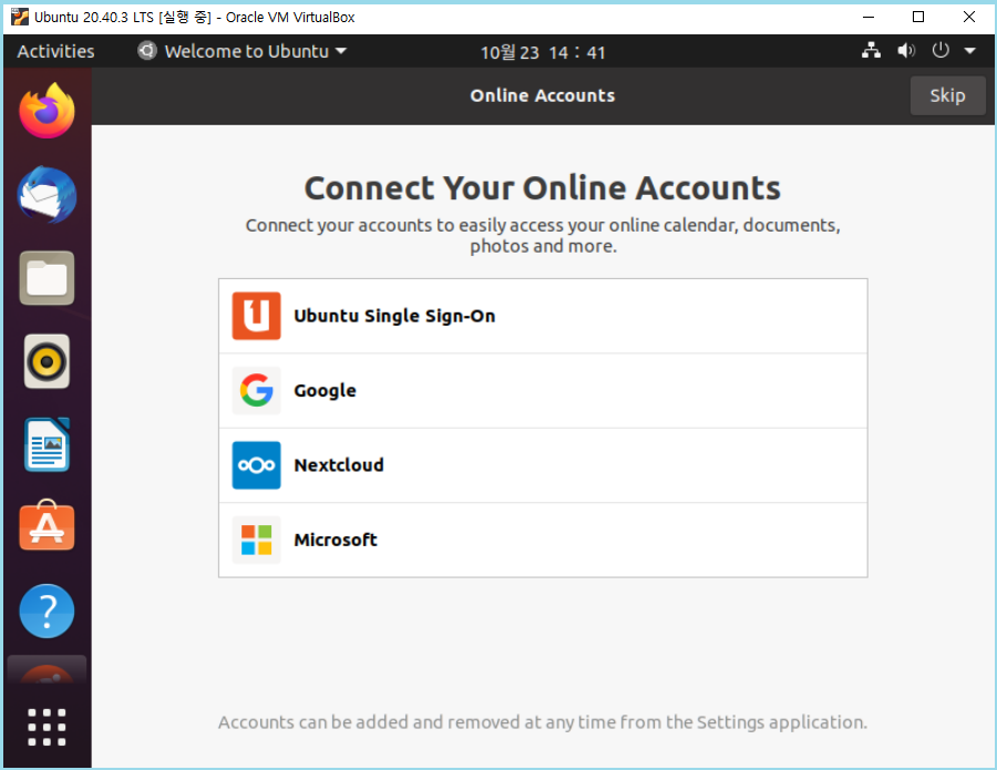 ● 우분투 메인 화면이 열렸습니다.
